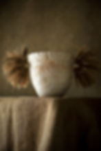 After the start of the full-scale war in Ukraine, Anya became interested in the topic of roots, a connection with ancestors with renewed vigor, which inspired her to combine ceramics with Carpathian wool and linen rope. The artist also began to use a minimum of chemical glazes and a maximum of natural materials, such as wood ash, rust, kaolin, wild clay from different regions of Ukraine.