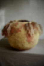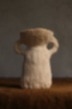 After the start of the full-scale war in Ukraine, Anya became interested in the topic of roots, a connection with ancestors with renewed vigor, which inspired her to combine ceramics with Carpathian wool and linen rope. The artist also began to use a minimum of chemical glazes and a maximum of natural materials, such as wood ash, rust, kaolin, wild clay from different regions of Ukraine.